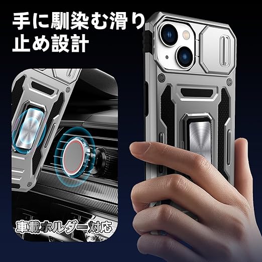 Redmi Note 13 Pro 5G / Xiaomi Poco X6 5G 用 ケース リング 耐衝撃 車載ホルダー対応 カメラ保護 傷防止 米軍MIL規格 携帯カバー 滑り止め 指紋防止 頑丈 タンド タフ・アーマー おしゃれ TPU+PC材質 グレー 111-HMN13PRO-06 a