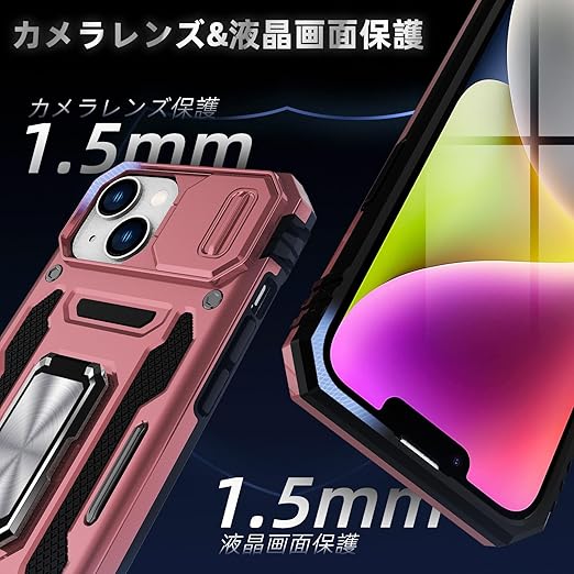 Redmi Note 13 Pro 5G / Xiaomi Poco X6 5G 用 ケース リング 耐衝撃 車載ホルダー対応 カメラ保護 傷防止 米軍MIL規格 携帯カバー 滑り止め 指紋防止 頑丈 タンド タフ・アーマー おしゃれ TPU+PC材質 ローズゴールド 111-HMN13PRO-05 a