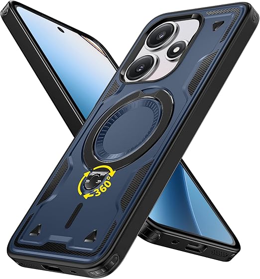 Xiaomi Redmi 12 5G 用 ケース 耐衝撃 スタンド付き Magnetic対応 Redmi 12 5G カバー リング TPU+PC ワイヤレス充電 米軍MIL規格取得 スタンド機能 (ブルー)117-XM125G-02 a