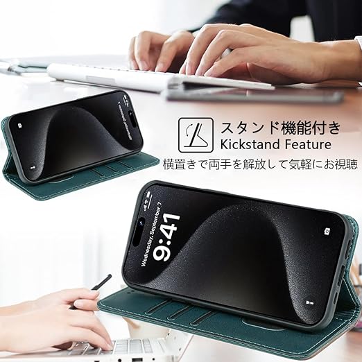 【機能性1:高品質PUレザー】外側のカバーには手触りがとても良い高品質の合成レザーを採用します。内側のスマホホルダーは柔軟なTPU素材を採用したソフトケースとなります。汚れにくくて指紋防止の特徴を持っております。耐衝撃の二重構造で落下の衝撃をうまく吸収します、本体をしっかりと守ります。