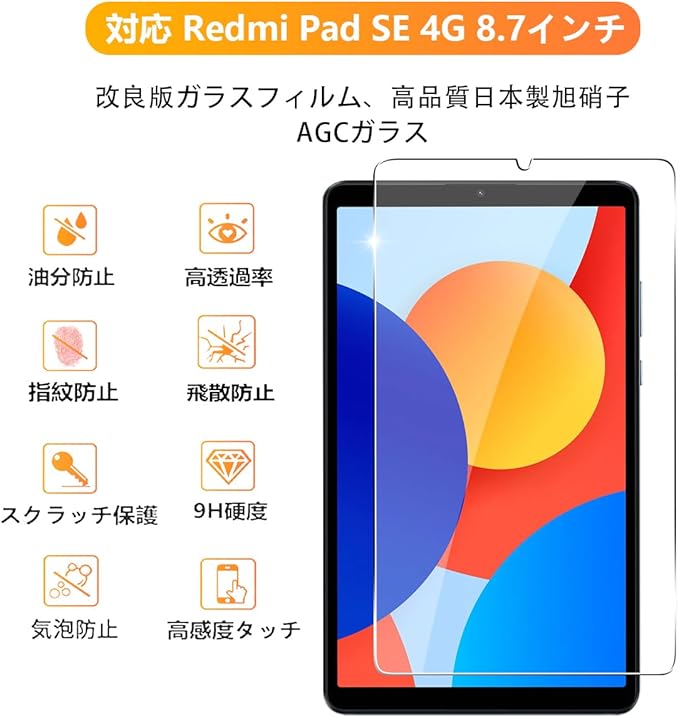 【9H強度&飛散防止】対応 Redmi Pad SE 4G 8.7 強化ガラス 保護フィルムは日本