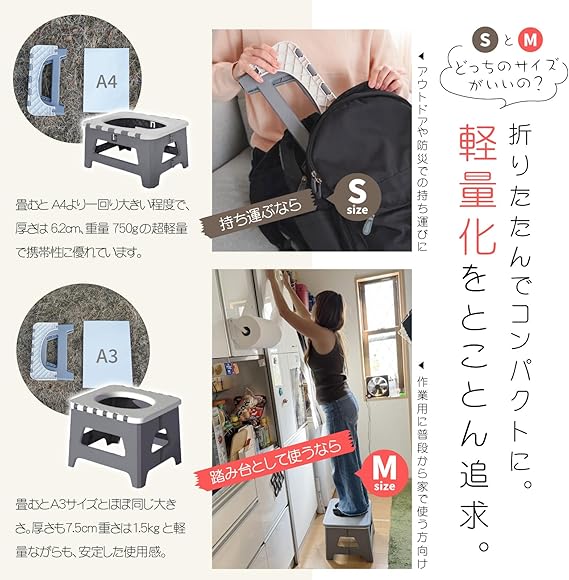 スツーレ 【防災グッズ大賞受賞】 Step 簡易トイレ 日常はイスや踏み台に ポータブルトイレ 携帯トイレ 耐荷重150kg 排便袋&凝固剤付き (ブラック, M) a