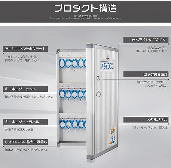 【素材】安全性と耐久性に優れるアルミニウム合金の材質、頑丈な作りでハンマー、ノコギリ、こじ開けなどの攻撃を防ぎます。 簡単に分類、検索、安全に保管できます。