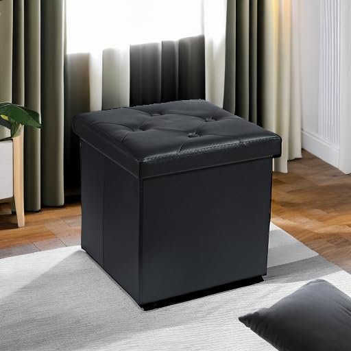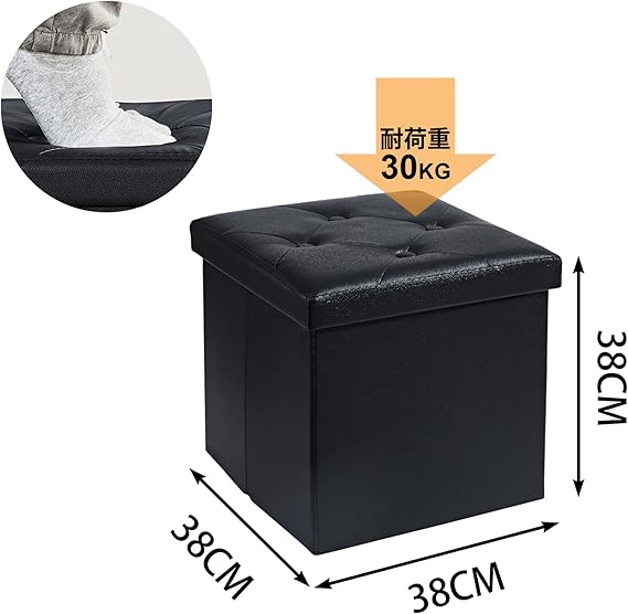 VECELO 収納スツール オットマン 収納ボックス 幅38*奥行き38*高さ38CM 耐荷重80kg 折り畳み可能 リビング/玄関/寝室適用 おもちゃ箱 洋服収納 化粧品収納ボックス 黒 a