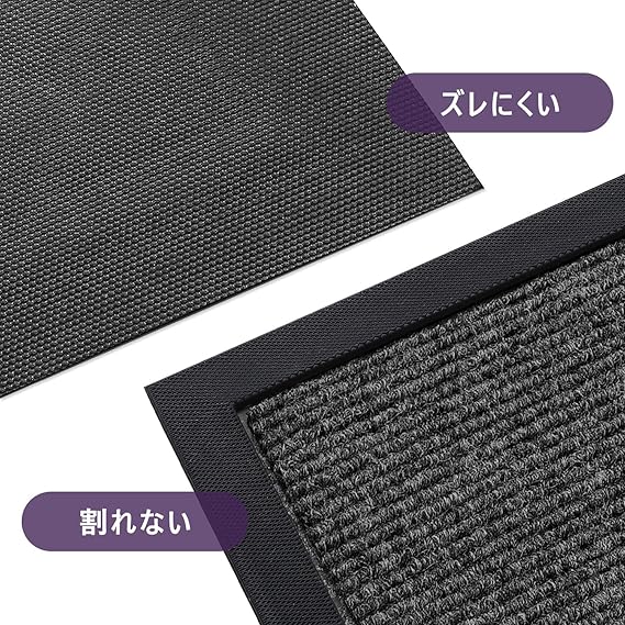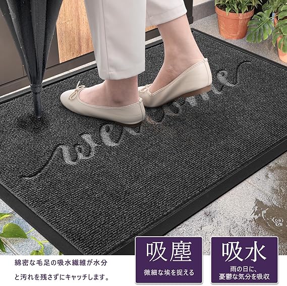 【汚れ排除機能】玄関マットの表面は 繊維の毛が硬くて、摩擦性があります。ドアマットに立ち上がると、靴底の土が落としやすい。屋外からの泥や土砂などを排除します。雨や雪などの汚れもすぐ吸収します。エントランスの清潔を守ります。