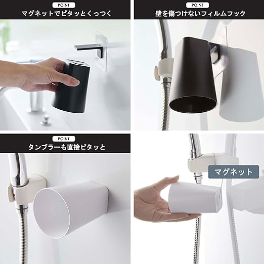 山崎実業(Yamazaki) フィルムフックマグネットタンブラー タワー 2個セット 浮かせる収納 ホワイト ブラック 5487 5488 a