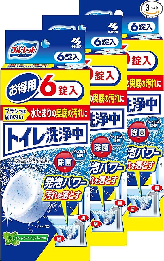 トイレ洗浄中 【まとめ買い】 水洗トイレの便器の底 (水溜り部分) 洗浄剤 フレッシュミントの香り 6錠×3個 トイレ掃除 に ブルーレットブランド 小林製薬 a