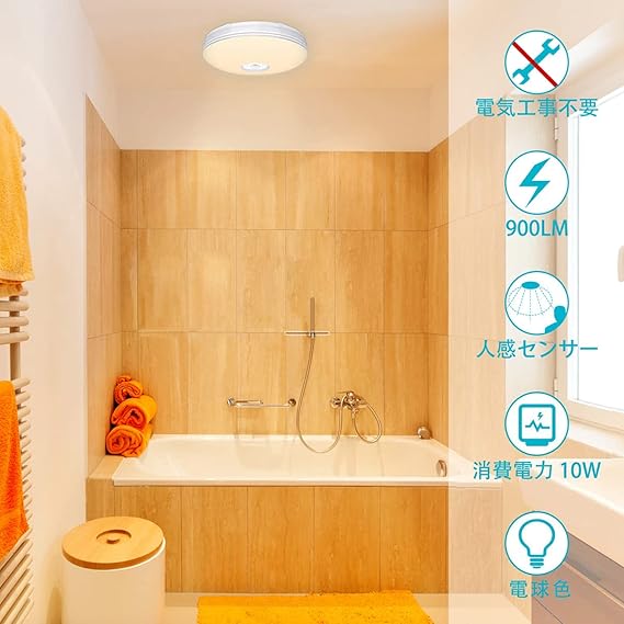 aurogeek LED 人感センサー ライト 4~6畳 小型 人感センサー付 照明器具 天井 シーリング 内玄関 廊下灯 天井照明 簡単取付 900lm (電球色) a