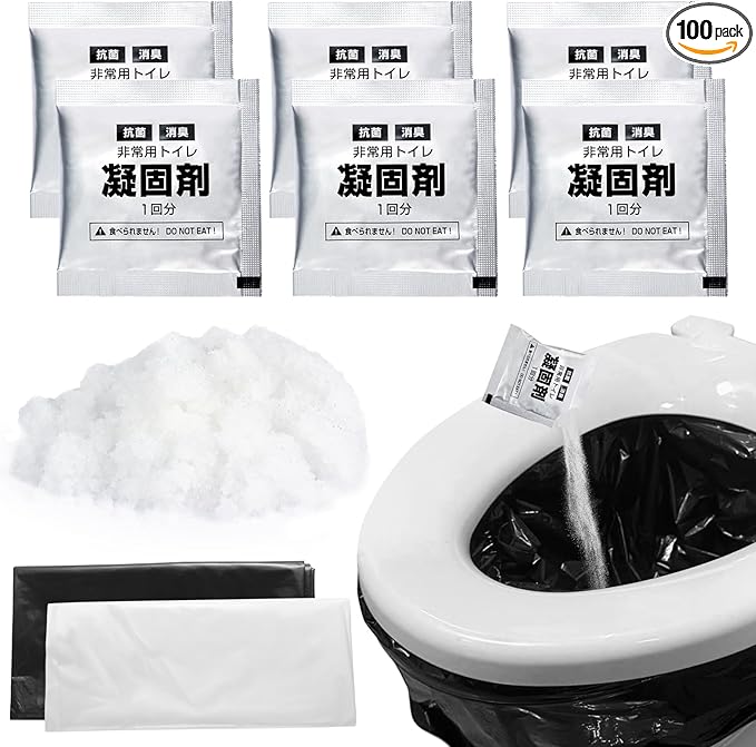 非常用トイレ 凝固剤 100回分 セット 個包装 携帯 災害グッズ 防災グッズセット ポータブル 登山 防災用 渋滞対策 消臭抗菌 15年保存 地震 台風 洪水 断水時 登山用 a