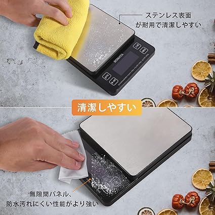 BOMATA(ボマタ) はかり デジタル キッチン 0.1g単位 5kg 全視野 バックライト画面 無隙間 パネル タッチ式 ボタン 地域設定 風袋引き ml ステンレス デジタルスケール ( 軽量 小物 料理 牛乳 ) B606 乾電池式 黒… a