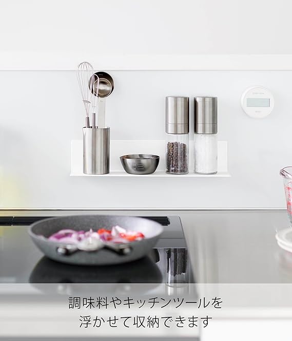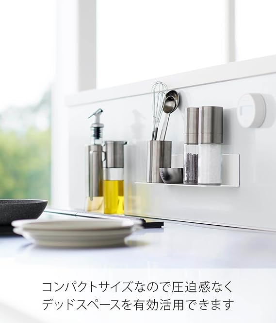 マグネットでキッチンパネルに浮かせて設置できるコンパクトサイズのキッチン棚です。レイア