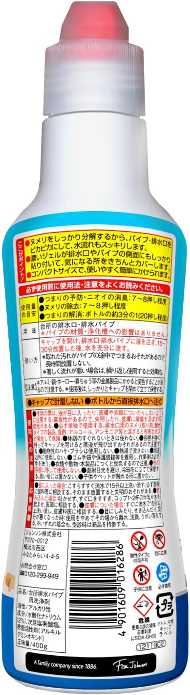 配水管・排水溝のつまりやニオイを解消するパイプ洗浄剤