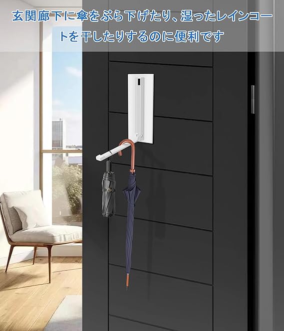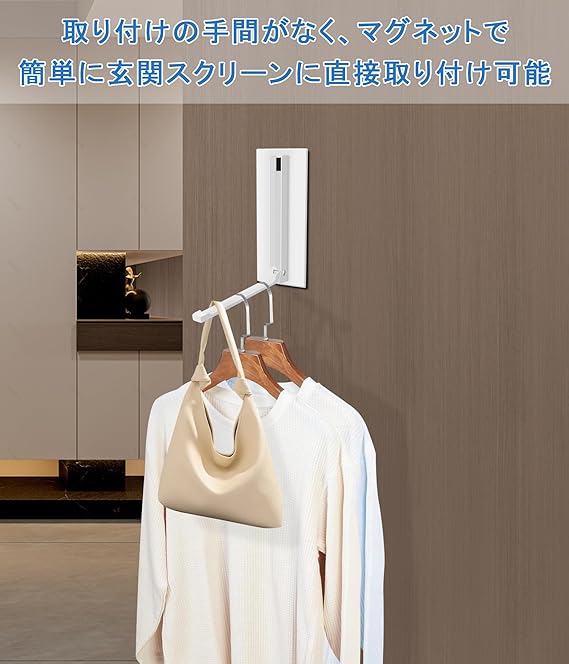 使用例:この折りたたみ式コートラックは、マグネット式の玄関ドアに取り付けて、濡れたマッキントッシュや傘を一時的に収納して乾燥させることができます。 また、冷蔵庫に掛
