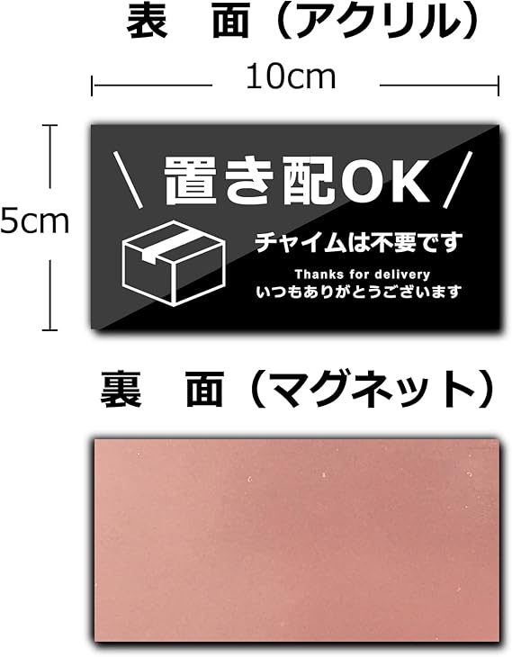 XILIWU 置き配OK マグネット アクリル製 10×5㎝ 屋外用 サインプレート 宅配ボックス 宅配BOX 再配達 防水 耐候 玄関 (チャイムは不要です, ブラック(マグネット)) a