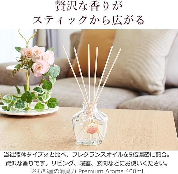 【濃密オイル】弊社液体タイプ※と比べ、フレグランスオイルを5倍濃密に配合。※お部屋の消臭力Premium Aroma 400ml