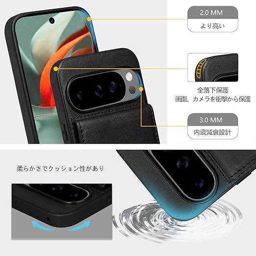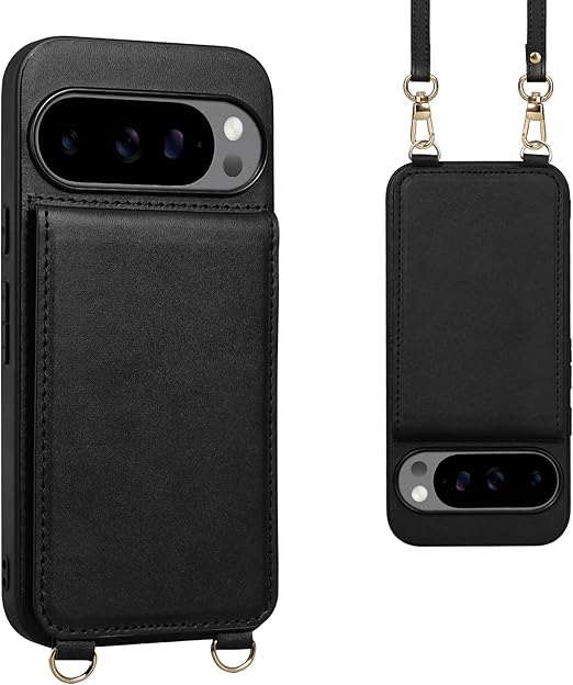 Shlybaay Google Pixel 10 ケース 手帳型 背面 カードケース Pixel 10 pro 手帳型ケース ショルダー ストラップ 背面ケース ピクセル 10 用 肩掛け カード収納 斜め掛け スタンド マグネット PUレザー D5N ブラック a