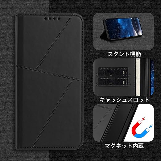 Google Pixel 10/10 Pro ケース 手帳型 財布型 高級レザー Pixel 10 Pro カードポケット付き Kitzomi ピクセル10 用 携帯カバー カード収納 耐衝撃 スマホケース 360度保護 マグネット式 スタンド機能[ブラック] a