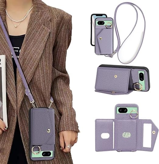 Google Pixel 10 ケース 手帳型 ピクセル10 Pro ケース 手帳型 グーグルピクセル10 財布型 ショルダー 背面カード収納 化粧鏡 スマホケース Googleピクセル10 ピクセル10携帯カバー GooglePixel10ケース スタンド機能 ストラップ 肩掛け 鏡付き - 紫 a