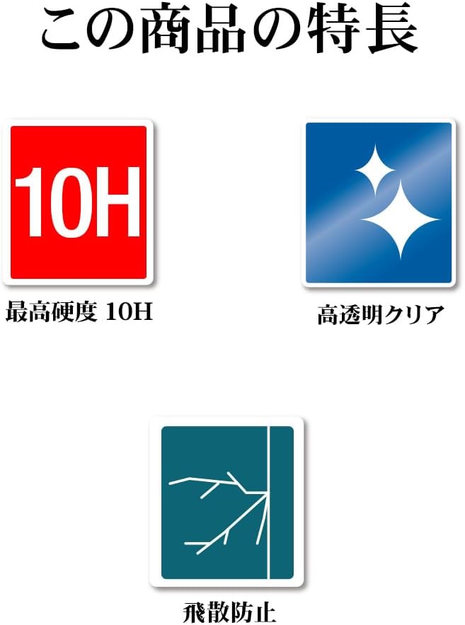 【最高表面硬度】日本産業規格(JIS)で定められた国家規格の一つで、「引っかき硬度(鉛筆法)」で製品表面硬度を測定し、数字が大きくなるほど硬さが強まります。最高硬度10Hの強靭なガラスで、美しい表面を保ちながら大切な端末をすり傷から護ります。