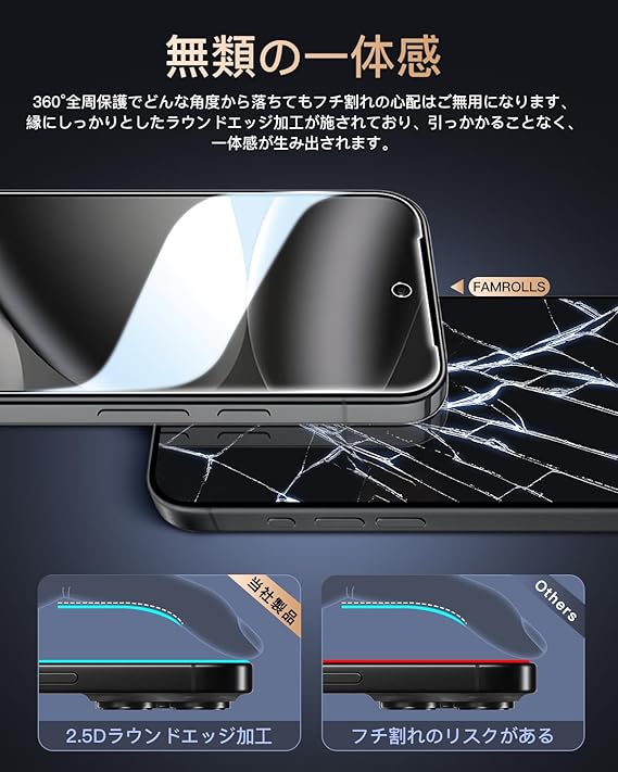 【対応機種】 google pixel 10 Pro XL 専用に設計されています。素材に日本製の旭硝子を採用。【年間30万販売パフォーマンス】:FAMROLLSの保護フィルムは30万枚の販売パフォーマンスに達成しました。【メーカー正規品】:実店舗を持つFAMROLLSブランドの保護フィルムは市販上の安価品、不良品とは異なり、高価なフィルムと変わらない高品質な保護フィルムを作り出すメーカーです。