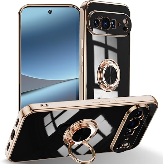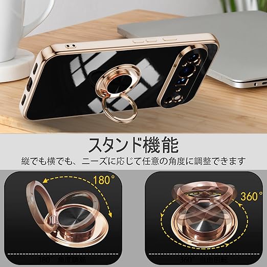 [ZoRoll] Google Pixel 10 Pro XL 5G 対応 ケース リング付き、 Pixel 10 ProXL TPU シリコン メッキ加工カバー 磁気吸着 軽量 薄型 人気 耐衝撃 タンド機能付き 360回転 車載ホルダー対応 グーグル ピクセル10プロ XL 用 カバー (ブラック) a
