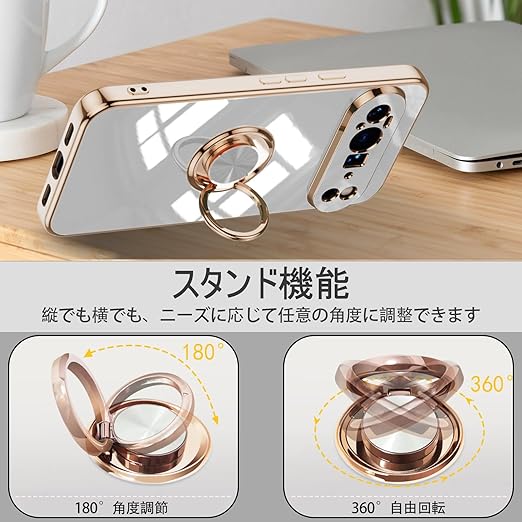 [ZoRoll] Google Pixel 10 Pro XL 5G 対応 ケース リング付き、 Pixel 10 ProXL TPU シリコン メッキ加工カバー 磁気吸着 軽量 薄型 人気 耐衝撃 タンド機能付き 360回転 車載ホルダー対応 グーグル ピクセル10プロ XL 用 カバー (ホワイト) a