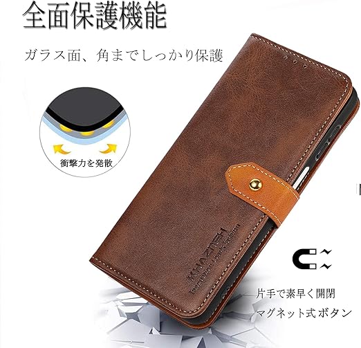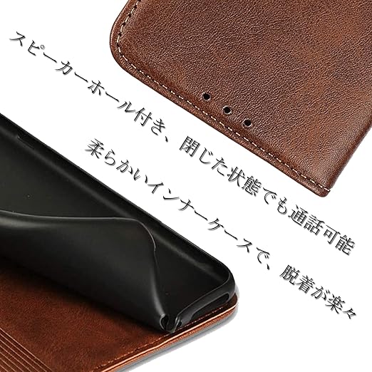 【シンプルで上品なデザインに、一点一点丁寧に仕上げたスマホケース】:外部は耐熱性と柔軟性を誇るPUレザーを採用した、キズや汚れに強く、放熱性や耐衝撃が良く、携帯本体落下防止に役立ちし、落としても衝撃を緩やかにして、携帯カバー隅々までしっかりを全面保護できます。インナーケースは弾力性のあるソフトTPU素材を採用しており、脱着が楽々で、さらにカメラより高めのデザイン、カメラを