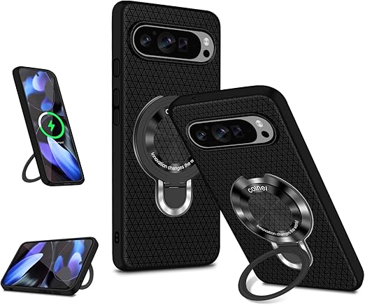 Google Pixel 10 Pro XL ケース 縦横両対応 リング付き マグネット搭載 MagSafe対応 グーグルピクセル10Pro XL ケース 多機能スタンド 背面の ひし形デザイン TPU 衝撃吸収 薄型軽量 全面保護 Googleピクセル10ProXL スマホケース a