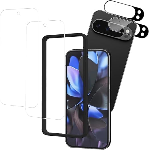 【2+2枚セット】ガイド枠付き KPNS 日本素材製 強化ガラス Google Pixel 9 Pro XL 用 ガラスフィルム カメラフィルム カバー 保護フィルム a