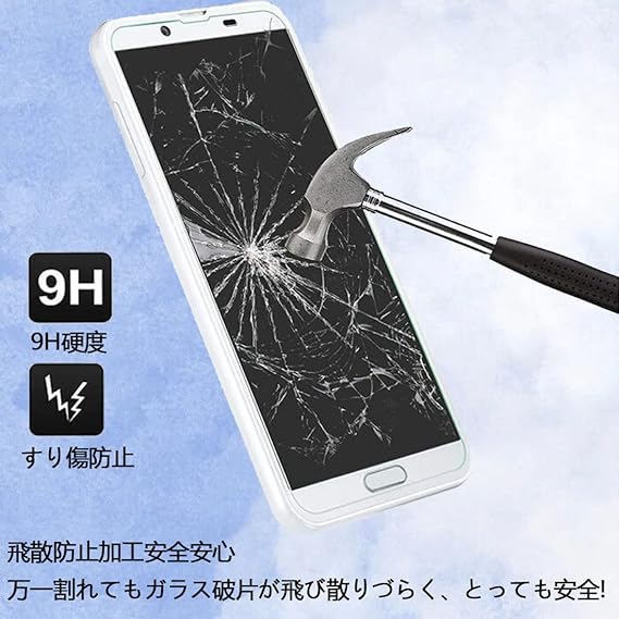 【硬度9H】高品質な日本製の旭硝子製、表面硬度9Hの強化ガラスは、スクリーンを守ることができます。鍵や刃物などの鋭い物体は損傷や割れから守ることができます。防水コーティング加工のため、ほこりや指紋などが汚れにくいです。付着しても簡単に拭くことができます。画面を美しく保ち、スムーズに操作できます。指紋防止加工。ハードコーティング加工により外部からの衝撃をフィルムが吸収し、画面へのダメージを最低限まで抑えました。ガラスフィルムは飛散防止加工