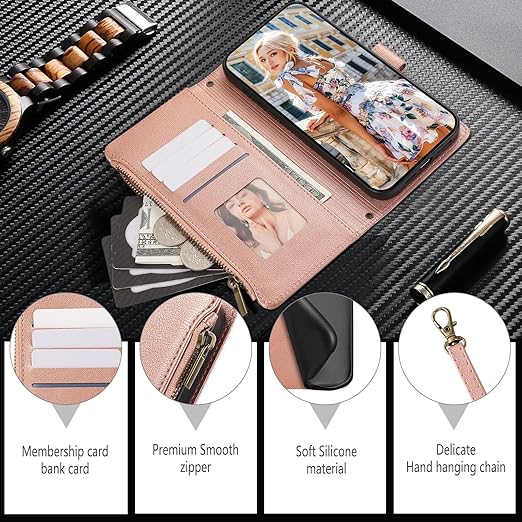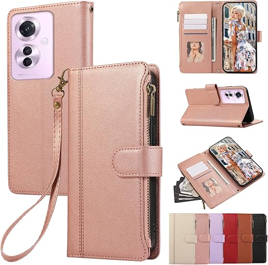 KW-LINK OPPO Reno11 A ケース 手帳型 CPH2603 ケース 小銭入れ ファスナー型 オッポリノ11 A 携帯カバー コインポケット カード収納 財布型 おっぽ ネノ11 A カバー スタンド機能 マグネット式 オツポreno 11a ケース 手帳型 OPPO Reno11 A スマホケース 同色ストラップ付き 薄型 耐衝撃 - ローズゴールド a