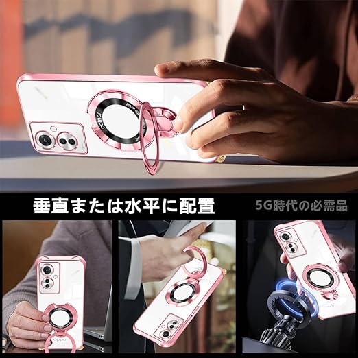 OPPO Reno11 A ケース クリア ショルダー 透明 リング付き docomo oppo reno 11A カバー スタンド機能 マグネット搭載 オッポレノ11a スマホケー ス 120度反転スタンド 耐衝撃 米軍規格 紐付き 斜めがけ 織りストラップ付き ネックストラップ ショルダー 縦/横 2WAY 長さ調整可能 取り外し可能 紛失防止(ローズゴールド) a