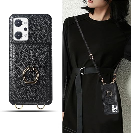 oppo reno9 a ケース ショルダー 可愛い oppo reno7 a 薄型 かわいい オッポレノ9a 7a 携帯 斜めかけ 肩掛け 首掛け 紐付き 韓国 軽量 カード収納 ショルダーケース おしゃれ 2way ブラック a