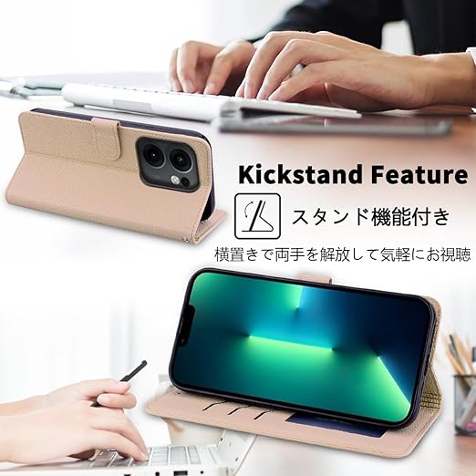 【特徴1:高品質PUレザー】軽量化のスマホケースです。外側カバーには滑り止めのライチ模様のPUレザーを採用します。内側のホルダーは柔軟なTPU素材を採用したソフトケースです。汚れにくくて指紋防止の特徴を持っております。耐衝撃の二重構造で落下の衝撃をうまく吸収します、本体をしっかりと守ります。