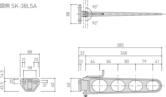 バルコニー物干金物(横収納型) 新協和 SK-38LSA-WC ホワイトクリーム 1セット2本組販売(アーム長さ水平時380mm)アーム横収納型・横型ブラケット a