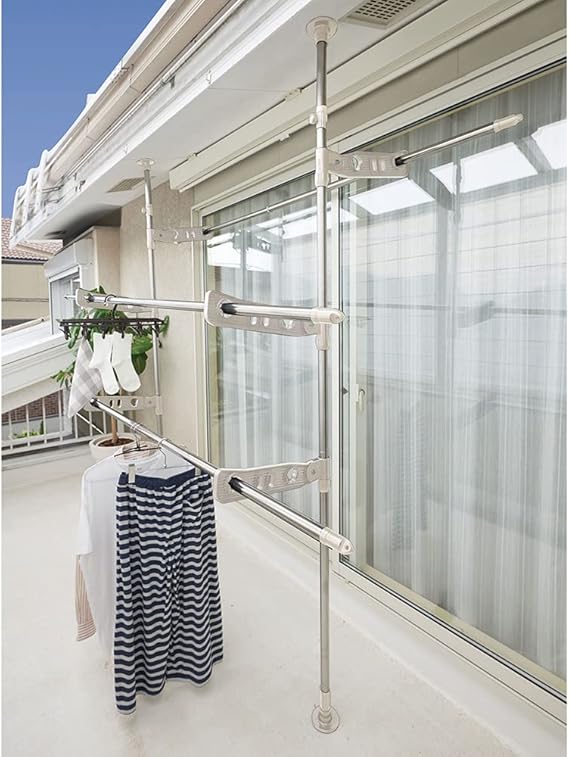 ベストコ ベランダ 突っ張り 物干し ステンレス 取り付け 幅9×奥行44~78×高さ220~300cm 3段タイプ ライトグレー NY-282 a