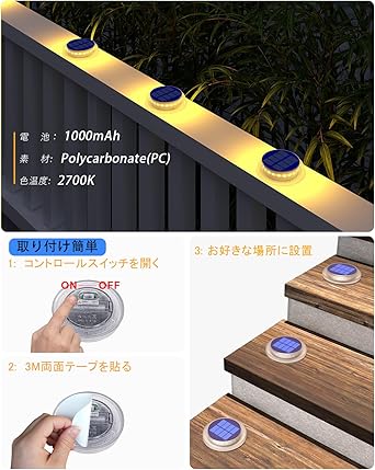 【長時間稼働&省エネ環境に優しい】LED ソーラーグラウンドライト内蔵の1000mAh充電式電池ソーラーパネルは、日中は十分な日差しの下で5-6時間充電する、光センサー付きで夜に自動的に14-16時間点灯可能です、面倒な操作がなくて、非常に便利で環境に優しい。しかも電気代はゼロ、家庭の経済にも優しいです。
