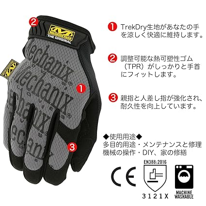 [メカニクスウェア] 保護手袋 オリジナル グレー S MG-08-008 タッチスクリーン対応 洗濯可 作業用手袋 バイク 自転車 防災 DIY 【日本正規品 EC専用パッケージ】 a