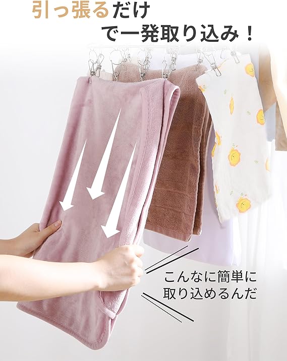 【Amazon.co.jp 限定】アイクラシ(Ikurashi) ピンチハンガー 52ピンチ 角ハンガー 引っ張るだけ ステンレス 洗濯ハンガー 洗濯ピンチ 洗濯 大きい タオル(15個予備ピンチ付) a