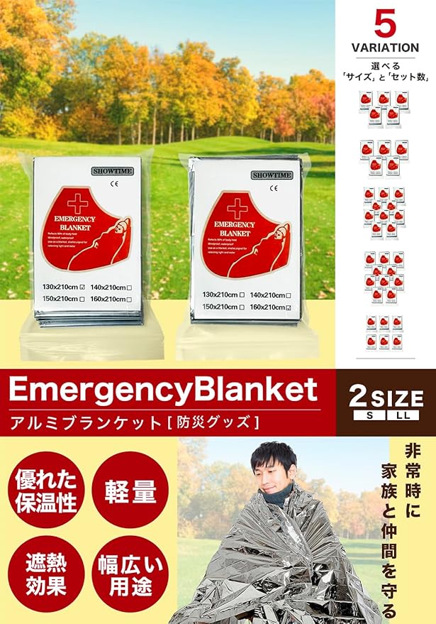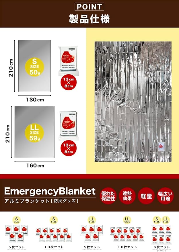 【エマージェンシーブランケット】災害時の必需品! 超軽量&コンパクトで、折りたたむとスマホサイズ(約13×8cm)、わずか50g!防災バッグや車内、ポケットにすっぽり収まり、いつでも携帯OK。高品質アルミシート採用で、抜群の保温&遮熱効果を発揮!