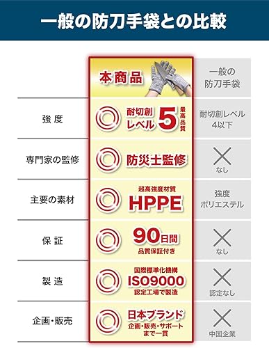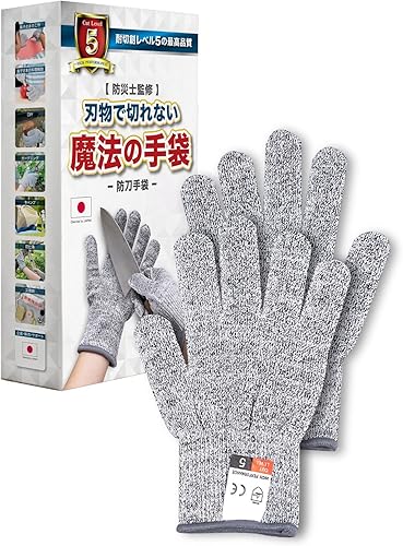 [Liferinger] 軍手 防刀手袋【現役防災士監修】 作業用手袋 大人 子供用 【回転刃を20回以上往復しないと切れない耐切創レベル5だから刃物から手を守ってくれる】長持ちタイプ 料理補助 工作 防災用 DIY 手袋