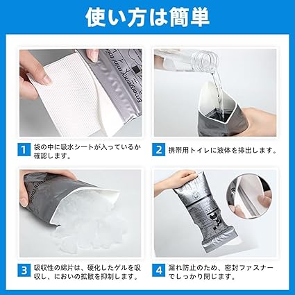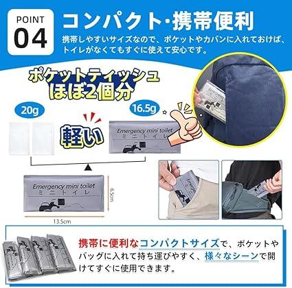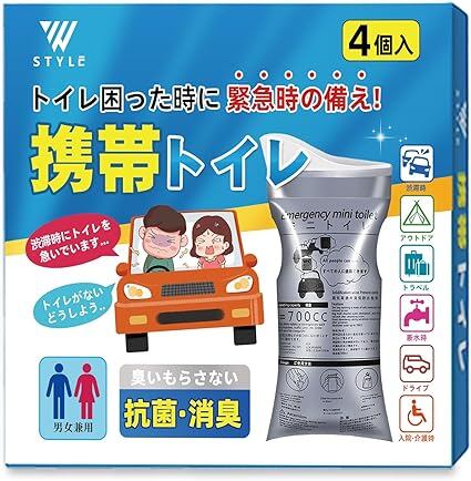 【愛知県企業開発】簡易トイレ【防災士が監修】 防災グッズ 携帯/災害用/非常用トイレ 凝固剤 15年保存抗菌カバー付き 緊急時手袋付き「W STYLE」 a