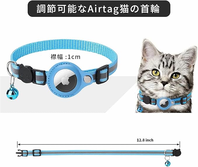Airtag gpsペット 追跡装置 エアタグ 首輪 猫用首輪 安全首輪 猫用 小型犬用 首輪 gpsペット スマホ対応 調節可能 頑丈耐用 光反射のデザインを加えて 軽量 耐衝撃 防水 防塵 紛失防止 洗濯可能 (ブルー) a