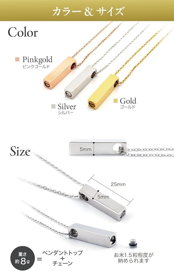 [ASHIFA] 遺骨 ペンダント レクタングル 手元供養 納骨セット付 金属アレルギー対応 安心 全3色 日本製 遺骨カプセル 遺骨入れ 遺骨 ネックレス 遺骨 アクセサリー ステンレス製 メモリアルペンダント (ピンクゴールド) a