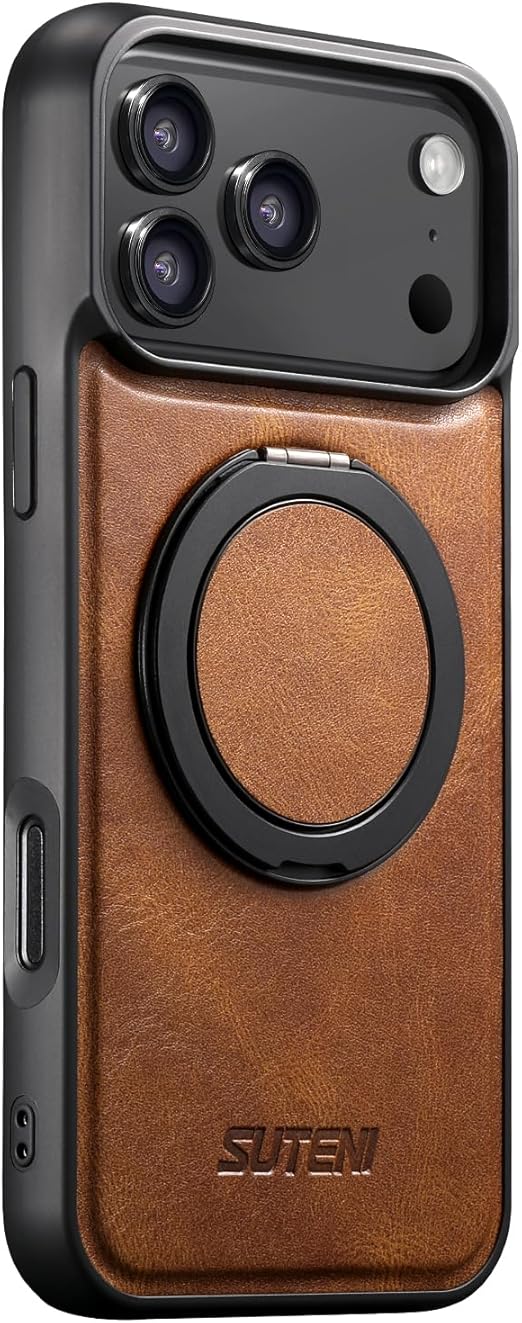 JCGOOD iPhone 17 Pro ケース MagSafe対応 背面隠し収納式リング付き スタンド機能 360度回転横縦両角度調整 落下防止 いphone17pro ケース ワイヤレス充電対応 車載ホルダー アイフォン17 プロ カバー滑り止め レザー スマホケース軽量薄型耐衝撃保護アイホン17プロ 用 ブラウン a