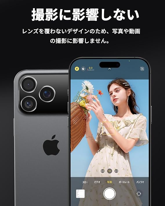 【アルミ合金一体感】アルミ合金素材を採用して、ガラス製カメラフィルムより軽い上に割れることもなく、指紋も付きにくいです。さらにアルマイト処理が施されているので、耐摩耗性にも優れています。縁部分も含め、精確なサイズにカービングされているので引っかかる感じがなく、ほとんどのケースとも干渉しません。 本体のレンズ部分と完全に融合し、違和感がなく、一体感と高級感に満ちていま