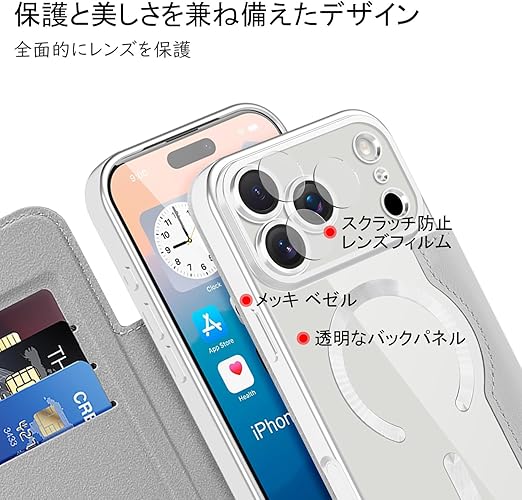 【REHOOF】iPhone 17 pro ケース 手帳型 magsafe対応 背面 透明 クリア 財布型 アイフォン 17 プロ ケース マグセーフ 手帳 ワイヤレス充電対応 カード入れ PU革 レザー スマホケース 軽量 薄型 防塵 耐衝撃 全面保護 スマホカバー(グレー) a