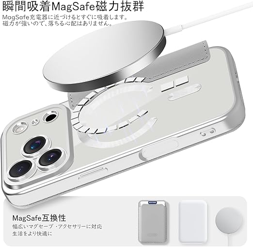 「MagSafe対応専用・強力な磁力吸着!」携帯をもっと便利に使いたいのですが、MagSafeに影響しないケースはありますか?これを試してみて! ケース内部は38個強力なマグネットを搭載、超吸着能力でいくら振っても落ちない。ワイヤレス充電だけでなく、Magsafe対応スタンド&リングも対応、リラックスした生活に重宝する。