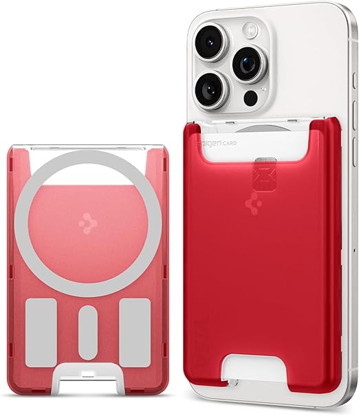 [Spigen] MagSafe対応カードケース 3枚カード収納 iMacデザイン マグネット搭載 iPhone 17 Pro Max iPhone 17 Pro iPhone 17 iPhone Air iPhone 16/15/14/13/12シリーズ マグネット スマホ カードケース 交通系 ICカード クラシック・C1 AFA07399 (ルビー) a