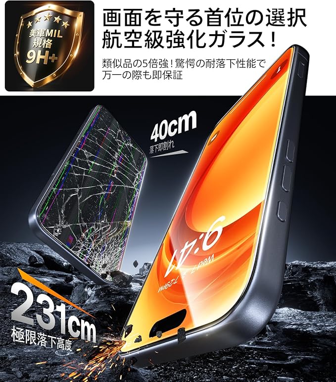 【航空宇宙技術採用! 231cm落下耐衝撃で「画面破損リスクゼロ」】TORRAS For iPhone17 フィルムは、航空宇宙技術(AGC「Dragontrail Pro」)により9H+Hv673の世界トップ硬度を実現。釘・鍵の傷や231cm落下(市販品比5倍耐性) からスマホの画面を防護。世界9,600万枚販売&画面破損報告0件※(※自社調べ)の実績だからこそ、高額修理代や突然の画面割れストレスから確実に解放へ。※お子